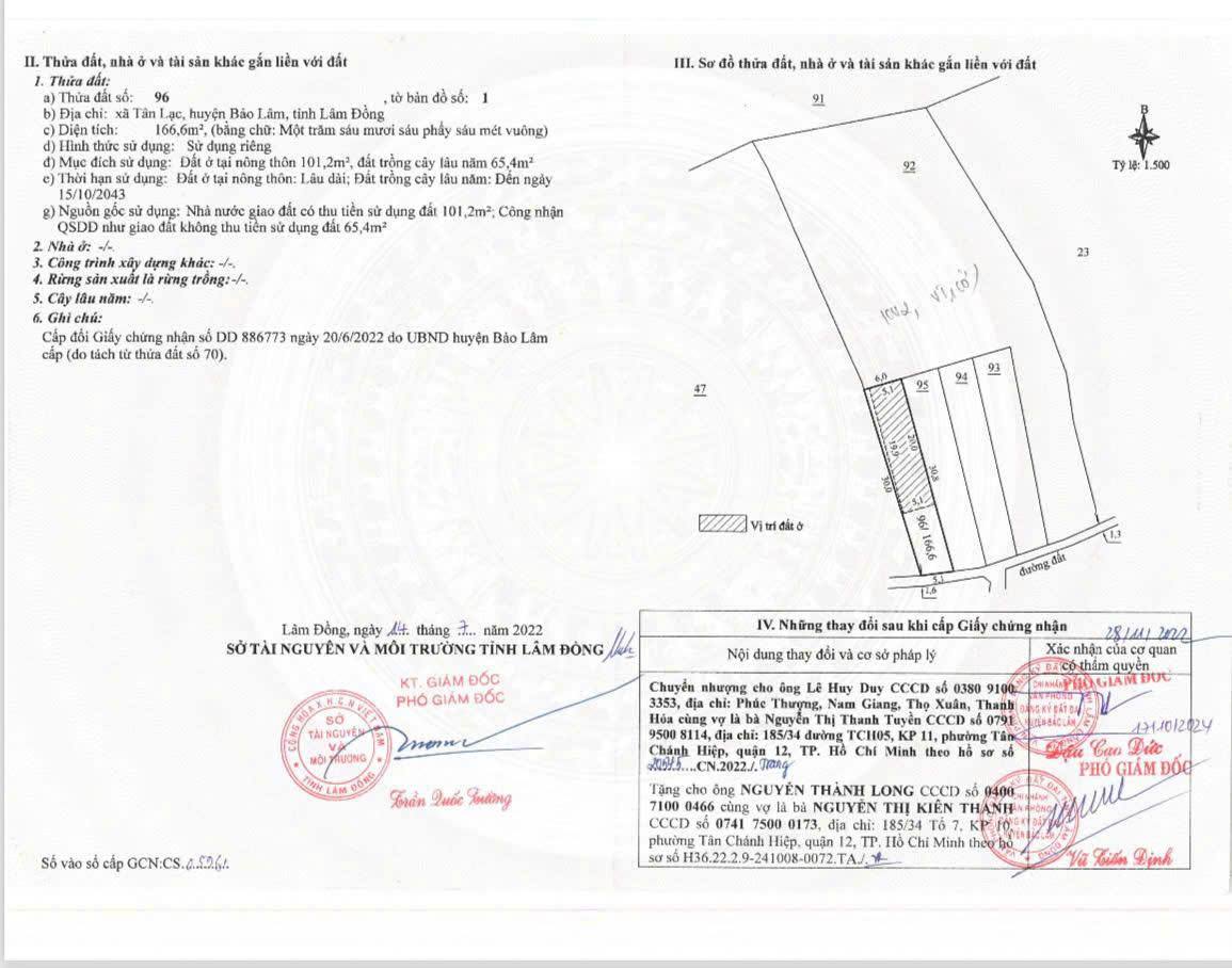 ĐẤT CẦN BÁNĐịa chỉ; Tân Lạc, Bảo Lâm, Lâm ĐồngVị trí đẹp, cách Quốc Lộ 20 chỉ 900m, gần trường chợ… tiện ích xung quanh đầy đủ.Diện tích 166,6 m2. Trong đó có 101,2 m2 thổ cưSổ hồng riêng sang tên nhanh gọn.Giá bán 450 triệu buông sổ.Liên hệ 0983762203Mong tiếp khách thiện chí.Xin cảm ơn!