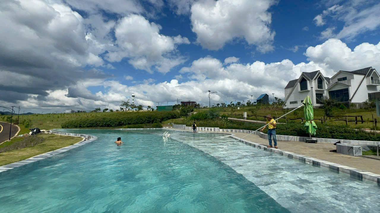 Đất tiếp giáp đường nhựa 12m (hướng Hồ Ngọc) và đường nội bộ 9m. Hệ thống hạ tầng cao cấp: điện âm, internet ngầm, cống thoát nước và hồ bơi chung.